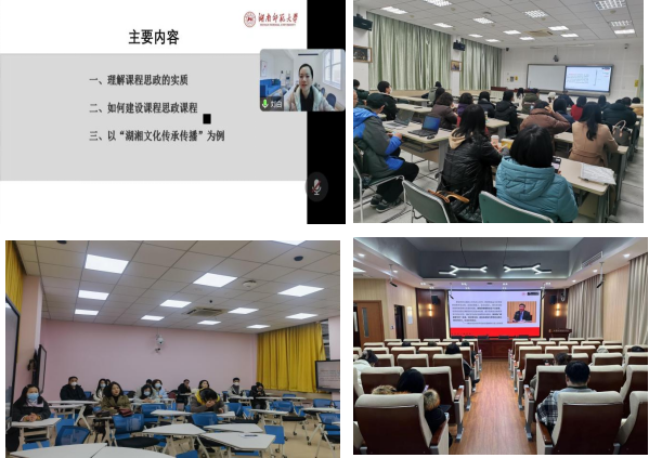 刘白教授围绕“课程思政在中外文学艺术类课程中的实施”主题展开论述。她首先从制度层面介绍了课程思政建设要求的由来与演进过程,解释了《高等学校课程思政建设指导纲要》的内涵要义。刘白指出,课程思政是一种课程教育观,是“课程承载思政、思政寓于课程”的理念和方法。结合丰富的教学案例,她向教师们分享了课程思政建设的宝贵经验,即坚持多学科思维融合和跨专业能力融合、坚持人文教育理念融入课程、坚持课程创新源于团队的力量。最后刘白以《湖湘文化传承传播》课程为例,阐释了如何找准契合点、如何寻求落脚点、如何激发共鸣点这三个核心问题,让听课教师受益匪浅。