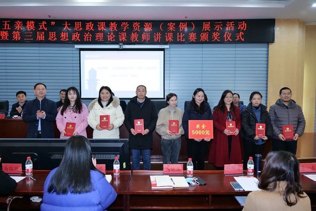 新闻网讯(通讯员 王豪男)为深入学习贯彻习近平新时代中国特色社会主义思想和习近平总书记关于思政课建设的重要论述,以评促教,以赛促教,不断提升思政课教师教学水平和业务素养,12月28日下午,学校于中原楼7楼会议室举行“五亲模式”大思政课教学资源(案例)活动暨第三届思想政治理论课教师讲课比赛颁奖仪式。校党委书记侯振发出席会议并作总结讲话,校党委常委、党委宣传部部长兼马克思主义学院院长周巍,党委办公室、学校办公室主任兼督察办公室主任刘建明,人事部部长、教师工作部部长兼教师发展中心主任黄娟,校工会常务副主席余启军,教务部部长钱学锋出席活动,会议由马克思主义学院党委书记邓杨主持,马克思主义学院全体领导班子成员和全体教职工参加会议。