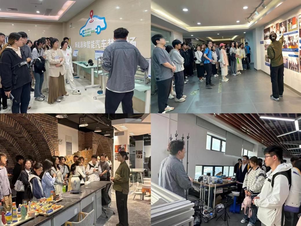 学校师生在讲解员的带领下,参观了陶瓷梦工场与汽车梦工场,了解武汉理工大学大学生创新创业园的优秀创业项目和成果。