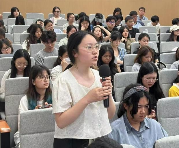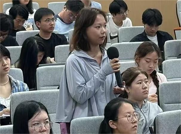 课堂上,同学们积极踊跃举手提问,分别就AI技术在道德伦理、法规制度、文艺创作、教育学习等方面应用问题与陈雪锦进行了交流。