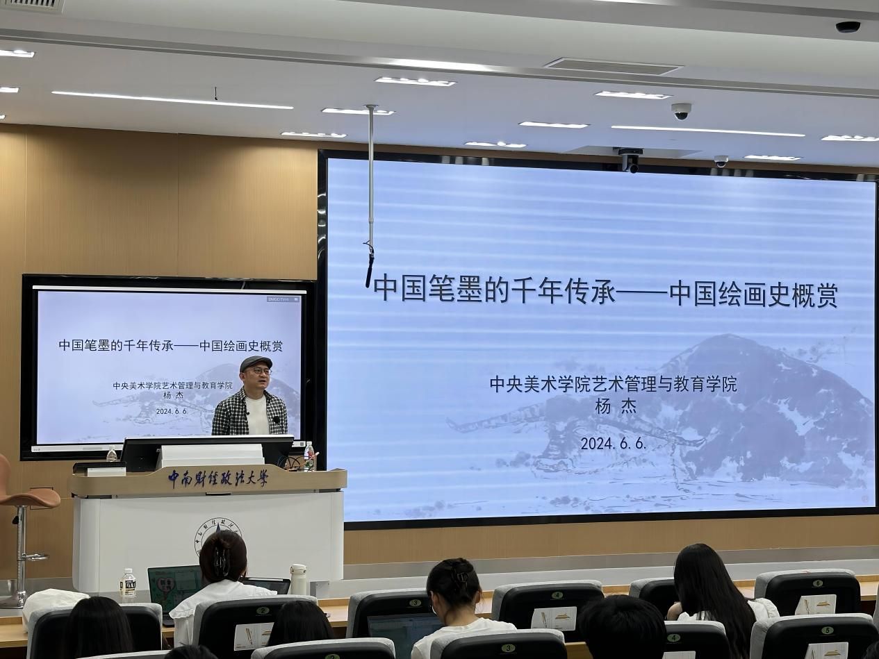 新闻网讯(通讯员 胡智 )6月6日下午,中央美术学院杨杰教授在文波楼112教室为我校学生讲授“中国笔墨的千年传承——中国绘画史概赏”,这是《百校百家共话百年中国》(以下称“三百课程”)思政通识课程第三期第六讲。