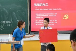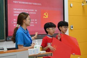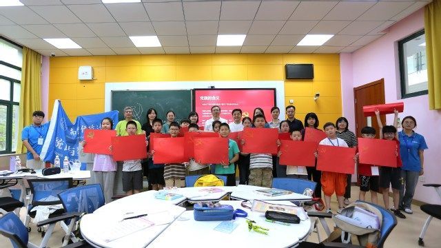 今天是“七一”建党节,二(1)班和五班的小朋友用手绘党旗为党庆生,展现了新时代少年童心向党、向阳生长的精神风貌。覃红肯定了公益辅导班的重要意义,勉励统数学院志愿者队伍在实践中磨练自己,在保障安全的基础上顺利完成此次辅导班活动。