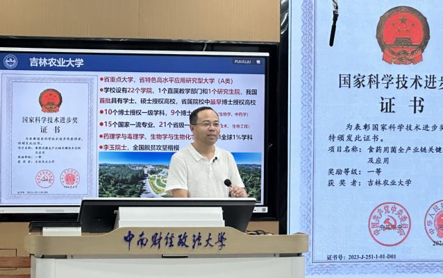 教务部副部长柳正华作总结。他表示李伟教授的科普讲解不仅揭开了人参的神秘面纱,还让同学们了解到中医药文化的博大精深。他鼓励同学们学习李伟教授的科研精神,努力学习,坚定文化自信,努力做担当民族复兴重任的时代新人。