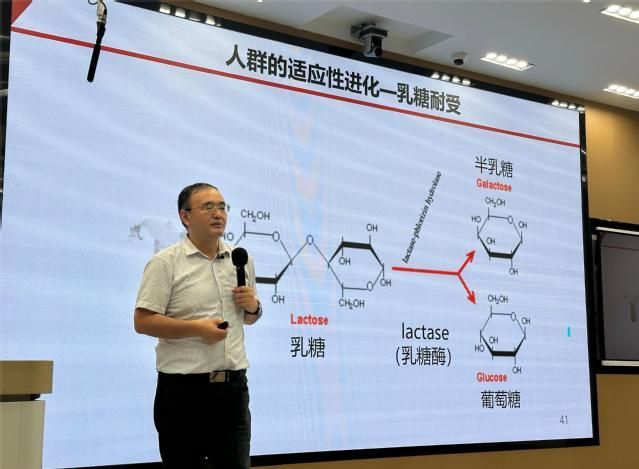 陆剑教授以哲学的“终极三问”开篇。他重点介绍了达尔文进化理论,这一理论回答了物种的起源、演变和动力问题,对后世研究有着深远的影响。结合大量实例,陆剑图文并茂地将基本的遗传规律、遗传物质的本质和突变发生的基本原理娓娓道来,并围绕尼安德特人的历史,将复杂的人类进化历程讲得通俗易懂。随后,陆剑介绍了新冠病毒的演化动态及多种病毒谱系划分,着重向同学们阐释了他所研究的S/L分型,这一理论也被广泛用于新冠病毒输入型疫情的分子溯源中。陆剑强调,新冠病毒进化过程中存在广泛的补偿性突变,感染S谱系病毒的患者重症比例显著更高,最终新冠病毒种群可能朝着更高的传播性、免疫逃避和降低致病性的方向进化。最后,他还分享了生命科学领域的其他前沿研究成果,为同学们展现了科学的无穷魅力。