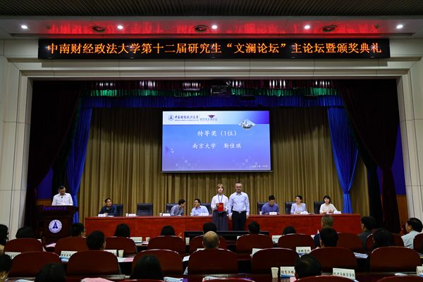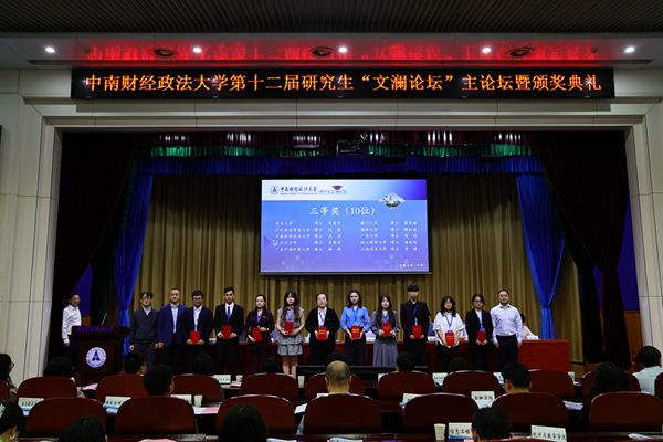 4月25日上午9时,第十二届研究生“文澜论坛”主论坛暨颁奖典礼在文泉楼学术报告厅举行。校党委副书记陈狮,校长助理、科学研究部部长李小平,国家人才计划特聘教授、武汉大学经济与管理学院教授李青原,电子科技大学张引研究员等特邀嘉宾出席颁奖典礼。本届论坛评审委员会专家学者,学校相关职能部门及各学院(中心)分管研究生教育负责人,本届论坛获奖论文作者、华中地区高校青年代表及各学院(中心)研究生代表300余名师生参加论坛。典礼由党委研究生工作部部长肖翠祥主持。
