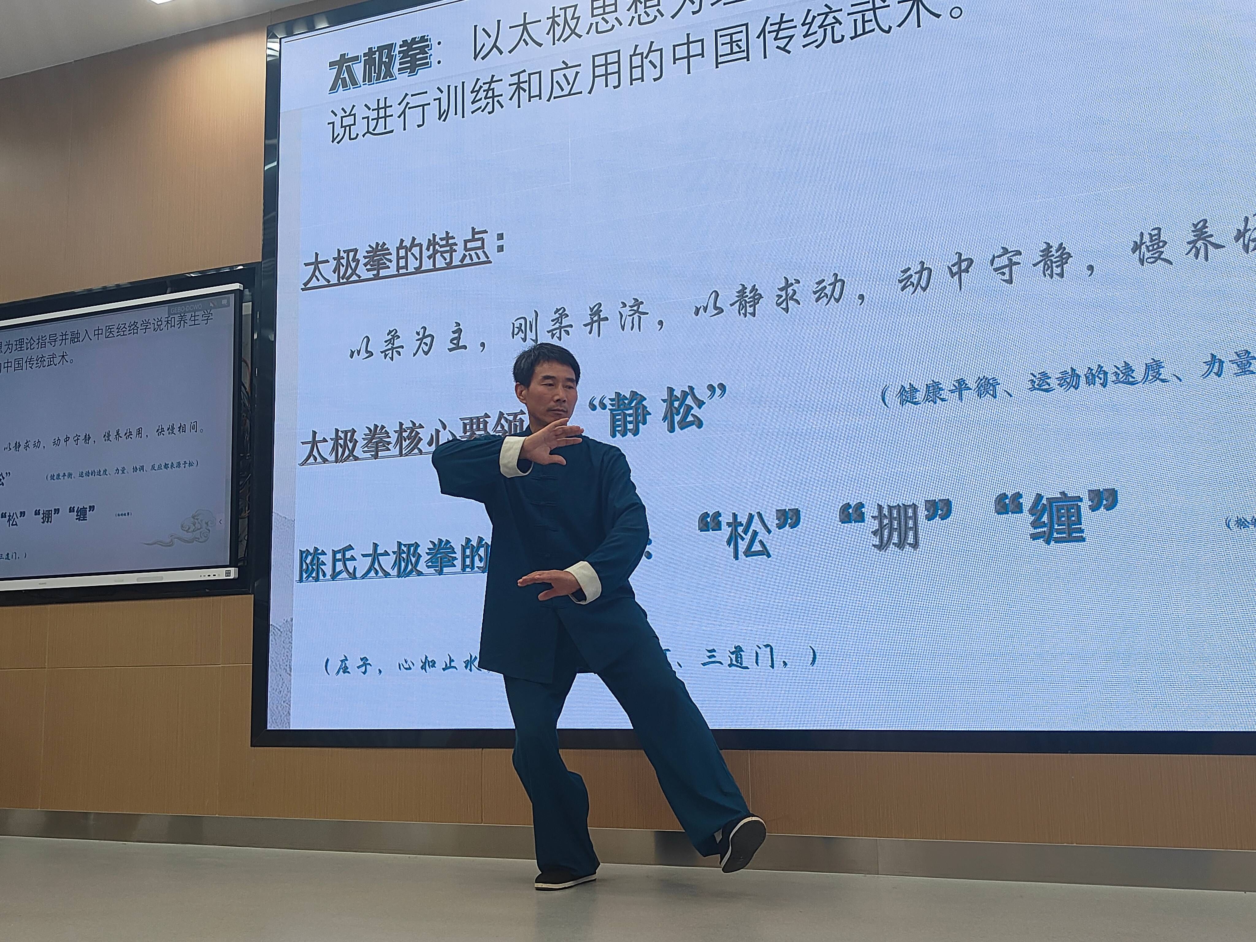新闻网讯(通讯员 胡智 梁思雨)5月8日,《百校百家共话百年中国》系列通识课程第五期第二讲在文波楼112教室举行。陈家沟国际太极院院长陈炳以“太极拳是什么”为主题,带领我校学子穿越千年武学长河,解密刚柔相济的东方智慧。