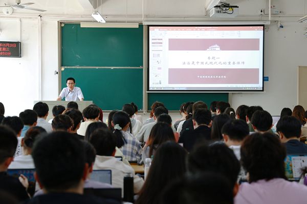 结合现实生活中的生动案例,陈柏峰紧紧围绕着“全面依法治国是坚持和发展中国特色社会主义的基本方略”等三个方面,为同学们深入阐释了全面依法治国对中国式现代化的重大意义。