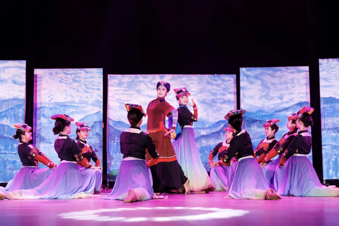 原创舞蹈《阿依奔现》成就了“梦想同框”特别时刻。舞台上,四川省凉山州越西县文星中学6名学生与校大学生舞蹈团团员共舞,重现“湖山同心桥”的教育情缘。