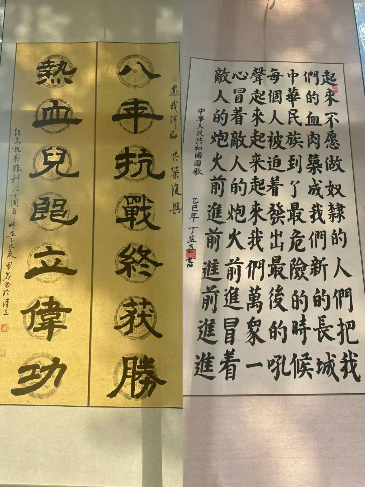 新闻网讯(通讯员 蒋雪岩 摄影 张锦秀)在纪念中国人民抗日战争暨世界反法西斯战争胜利80周年的历史性时刻,我校以"烽火丹心,笔墨峥嵘"为主题开设书画展。本次书画展由离退休人员工作部、校老协老教协和青松书画社共同举办,通过饱含深情的书画印作品,赓续红色血脉,弘扬抗战精神,彰显人文社科大学的文化担当。