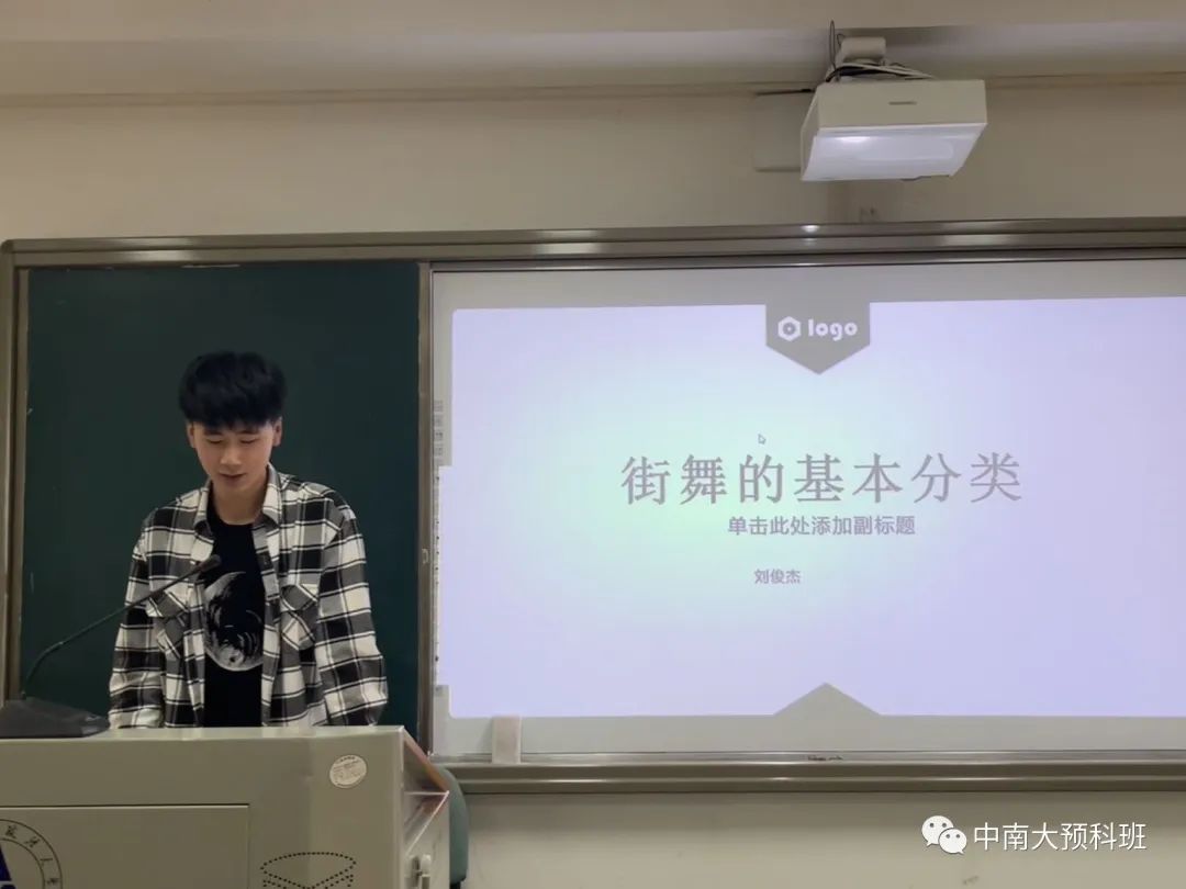 中南大预科班全新活动五分钟课堂展示第一部分是街舞简介,“舞蹈是藏在灵魂里的语言”,刘俊杰同学为同学们介绍了街舞的具体分类,每个舞种均匹配其相应的视频,同学们在音乐的律动和舞者的表演下了解了嘻哈舞、霹雳舞、机械舞、锁舞、爵士舞、甩手舞。第二部分是中山桥简介,“家乡风物志—中山桥”,于阳同学来自于甘肃省兰州市,介绍了自己家乡的兰州黄河铁桥。据其介绍,兰州城以黄河东西走向为基础,在黄河南北两岸进行建设。黄河铁桥成为了沟通黄河南北的重要桥梁。第三部分是贵州美食,“吃货的最高境界—眼见为食”,在王值同学的讲解下,大家的肚子都咕咕叫了,立刻打上飞的前往贵州吃遍大街小巷!第四部分是刑侦学,“一双鬼手只为沉冤得雪,满怀佛心唯愿天下太平”,朱家同学选择刑侦学为主题,以港片《读心神探》为切入点,普及了心理学和微表情在刑侦方面的重要作用,介绍了大家可以在日常生活中使用的微表情观察方法;以《法医秦明》向大家介绍了法医这一特殊职业的神圣使命。第五部分是配音,“以声演绎,声声入人心”,李柏清同学为大家介绍配音艺术,一个人的声线是灵活的,不拘泥于一种声调,而在无穷种声调的变化中可以给予人以不同年龄、不同身份的声线转
