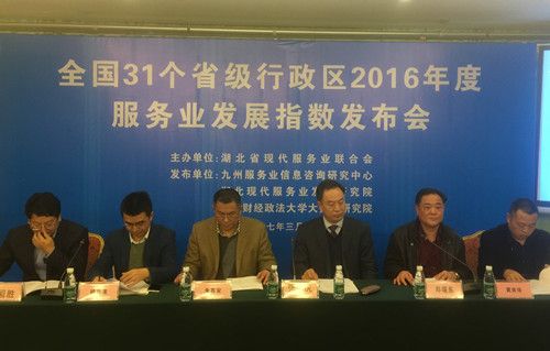 3月9日,由湖北省现代服务业联合会牵头,我校统计与数学学院、大数据研究院张虎院长负责主持研究的《2016年全国31个省级行政区服务业发展指数》新闻发布会在汉召开,报告具体由张虎院长发布。