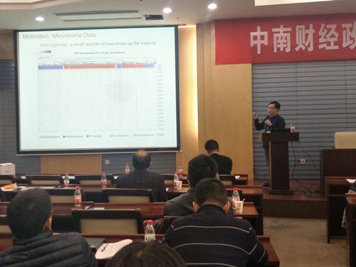 来自北京大学的助理教授林伟以“Low-Rank Recovery from Large Count Data”题,首先向我们详细讲述了两类数据,微生物相关数据与文本数据,对于微生物数据,它具有稀少性,存在很多零变量值,对于处理这些零变量,通常的方法是在模型中加入常数项等,本报告中,林伟主要想我们介绍了低秩矩阵复原计数的方法来解决此类数据。