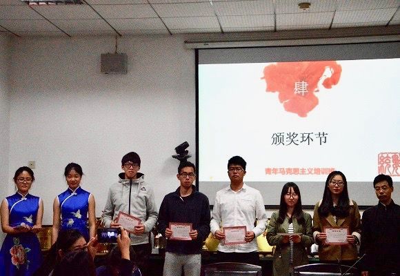 最后,王书记与胡�老师分别为青马班结业学员代表及优秀学员代表颁奖。经过几个月的培训,青马班学员们对马克思主义有了更加深入的了解,希望大家都能在马克思主义的带领下共同为中国特色社会主义事业的建设添砖加瓦。