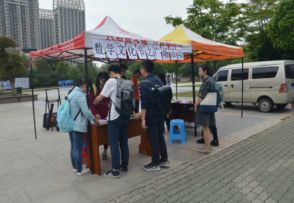2017年4月20日下午,“数学文化节――数不尽的情缘”在五羊广场成功举办。举办期间,许多同学被数学吸引过来,回答一道又一道的题目,完成一个又一个任务,收获一份又一份快乐。