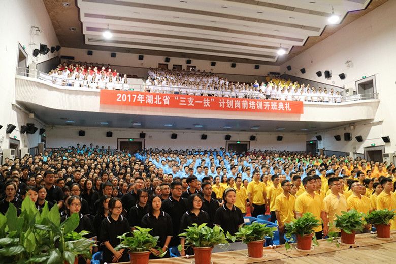 7月24日上午,由湖北省人力资源和社会保障厅主办、我校统计与数学学院承办的湖北省2017年“三支一扶”计划岗前培训开班典礼在我校首义会堂举行。省人力资源和社会保障厅党组成员、副厅长陈金刚,省水利厅党组成员、副厅长焦泰文,省残联党组成员、副理事长朱志斌,省文化厅副巡视员徐尚文,省卫生计生委人事处调研员曾理,省农业农村厅人事处副处长吴胜兵,省扶贫办扶贫开发培训中心主任张平和米兰电竞·(中国区)副校长刘仁山出席了开班典礼。开班典礼由省人社厅市场管理处刘鸿处长主持。