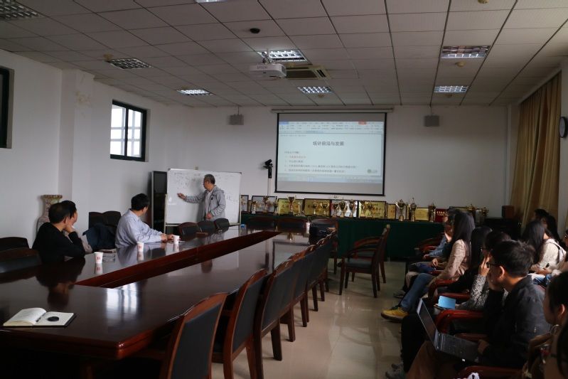 座谈会后,李选举教授为全体师生作了题为《统计前沿与发展》的专题讲座,重点讲解了目前统计前沿的热点问题和目前统计学科的发展趋势,并结合实际例子与同学们展开深入探讨。