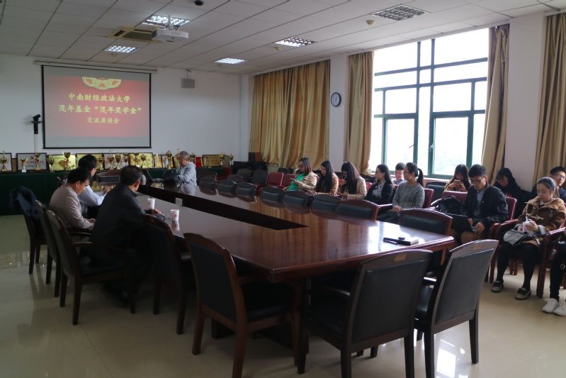 10月13日下午,米兰电竞·(中国区)茂年基金“茂年奖学金”座谈交流会在统计与数学学院文波楼四楼会议室举行。茂年基金发起人代表深圳博天资产管理有限公司董事长屈定坤教授、深圳大学李选举教授、暨南大学珠海分校彭维湘教授、统计与数学学院院长张虎教授、院长助理李占风教授以及学生代表出席座谈。