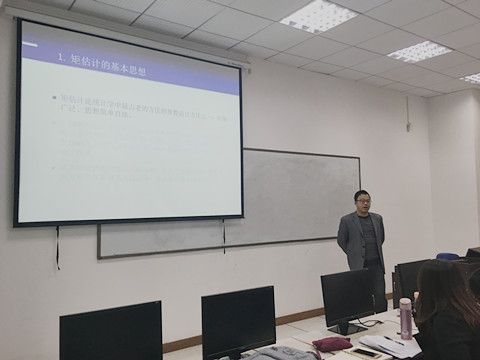 赵目老师讲课题目是参数统计矩估计,他介绍了矩估计产生的历史背景,有趣地引用了生活中村民称重木料的例子加以说明。赵目老师在讲解了矩估计的定义之后,当堂解答了简单的习题辅助理解,也指出了矩估计应用的注意事项。