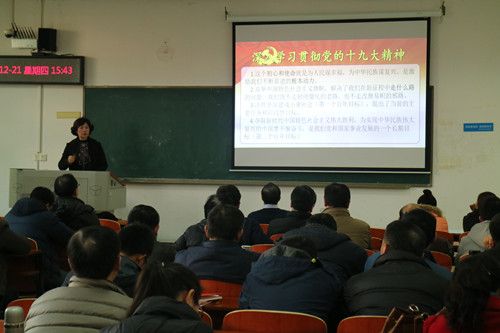 12月21日下午,统计与数学学院在文波楼304教室召开党的十九大精神学习宣讲会,经济学院朱巧玲教授作宣讲辅导报告,学院全体教职工参加学习,本次宣讲会由院党委林际福书记主持。