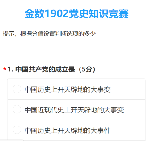 金数1902团支部组织全体同学学习了党史及团史相关知识,并在活动最后同学们互相讨论交流学习感想。其中党史学习采用了党史知识竞赛的方式,提升了团日活动的趣味性,调动起了支部成员的积极性,激发大家学党史、知党情、感党恩、跟党走的爱国热情。