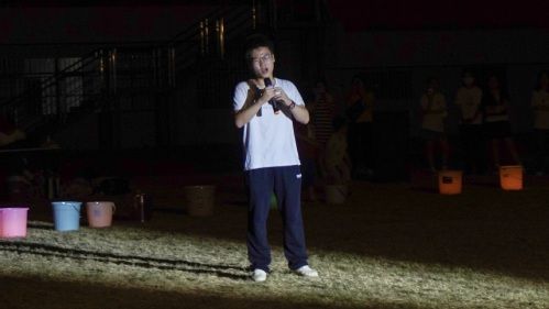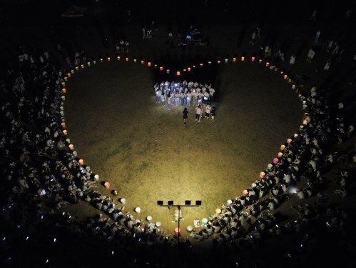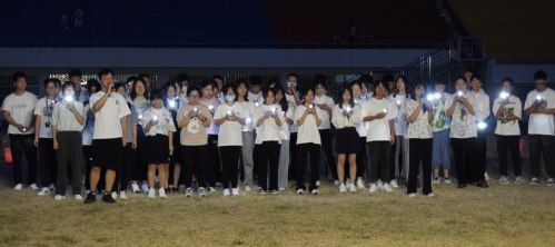 节目表演结束,全体同学围坐在烛光爱心边,齐唱《水调歌头》。“但愿人长久,千里共婵娟”,充满诗意的歌词蕴含着同学们对团圆的期盼与祝愿。手机灯光汇成的“星海”,为晚会画上圆满的句号。