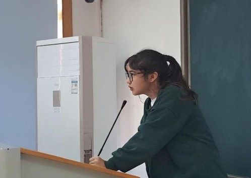 故事三:胡梦琼同学分享了在自己的家乡由于国家的人才引进政策,教育条件得到了极大地改善,学校从小平方变成高层房屋,越来越多的人回到家乡致力家乡发展。