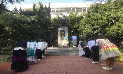 为缅怀革命先烈,教育同学们继承革命先烈的光荣传统,弘扬民族精神,在历史经验中长智慧,增强信心,用青春唱响“强国复兴有我”的时代强音,预科2201班的同学们前往首义校区陈毅先辈的雕像前进行献花。