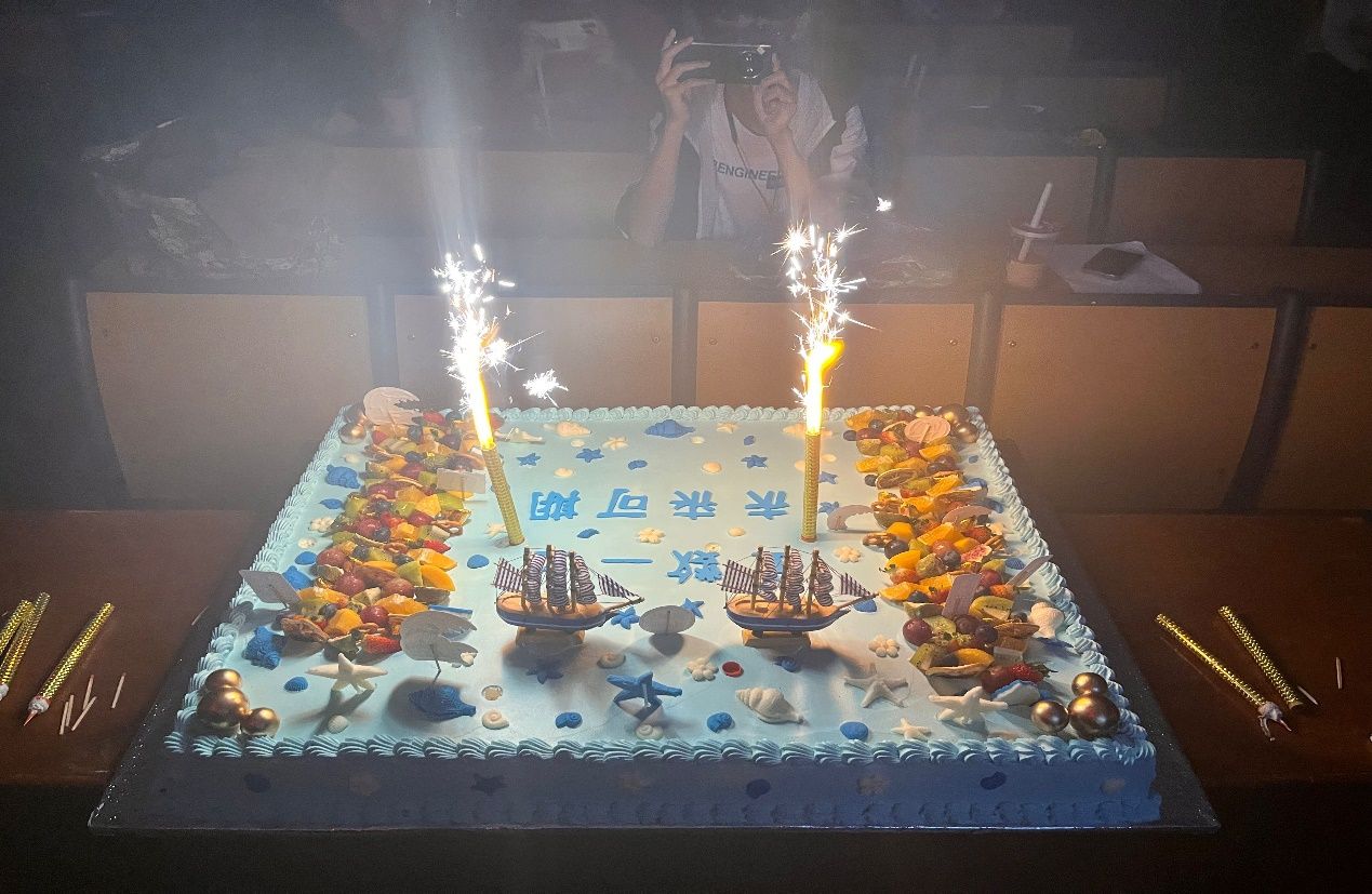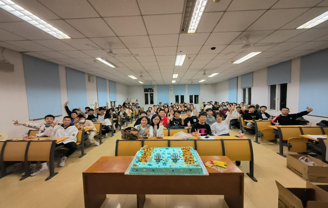 活动最后一项,两班班长总结了在本次“献礼二十大,送法入人心”主题班会暨团日活动中所凸显的新思想和精神内涵,肯定了大家积极学习、踊跃发言的良好精神风貌,在同学们响亮的口号声中,活动进入尾声。当写有“金数一二·未来可期”的蛋糕分到每位同学的手中,想必大家在集体中获得的幸福感也有了一次甜蜜的迸发。与此同时,屏幕上开始播放法治主题影视剧《人民的名义》,活动在昂扬的氛围中圆满结束!