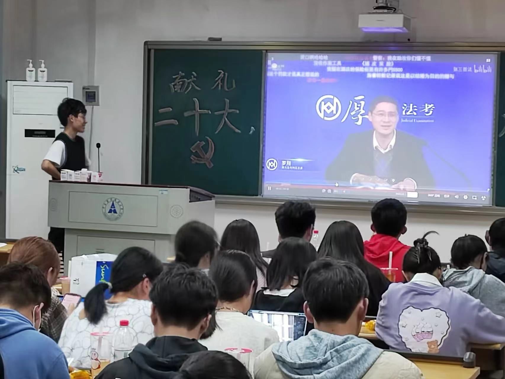 活动第四项,观看罗翔老师的趣味学法问答视频。本环节由金数一班组织委员奚瑞祺主持。罗翔老师亲切的声音让同学们迅速融入宪法学习氛围,有趣的讲解让空气中充满了快乐。面对着关乎生活又闻所未闻的法律小故事,同学们积极做出着自己判断,伴随着欢声的是收获知识的喜悦,成功将本次活动推向了第二次高潮。