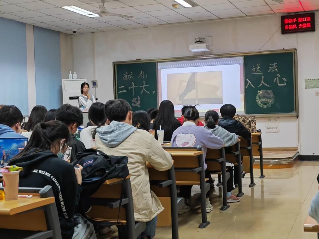栉风沐雨百年路,砥砺奋斗新征程。2022是中国共青团建立100周年,也是党的二十大召开之年。为认真贯彻党的二十大精神,深入宣传学习宪法和中国特色社会主义法律体系,响应我院二十大主题教育实践活动,10月26日下午3时,统计与数学学院金数2201、2202班在文润楼306教室召开“献礼二十大,送法入人心”主题班会暨团日活动。