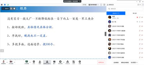 同学们与几位分享人进行了热切的互动,几位嘉宾也一一为大家答疑解惑。会议的最后,主持人肖贵对嘉宾们精彩的分享表示感谢,并送上了对师兄们的祝福,期待明年的这个时候22级毕业生们也能找到心仪的工作,有所斩获!