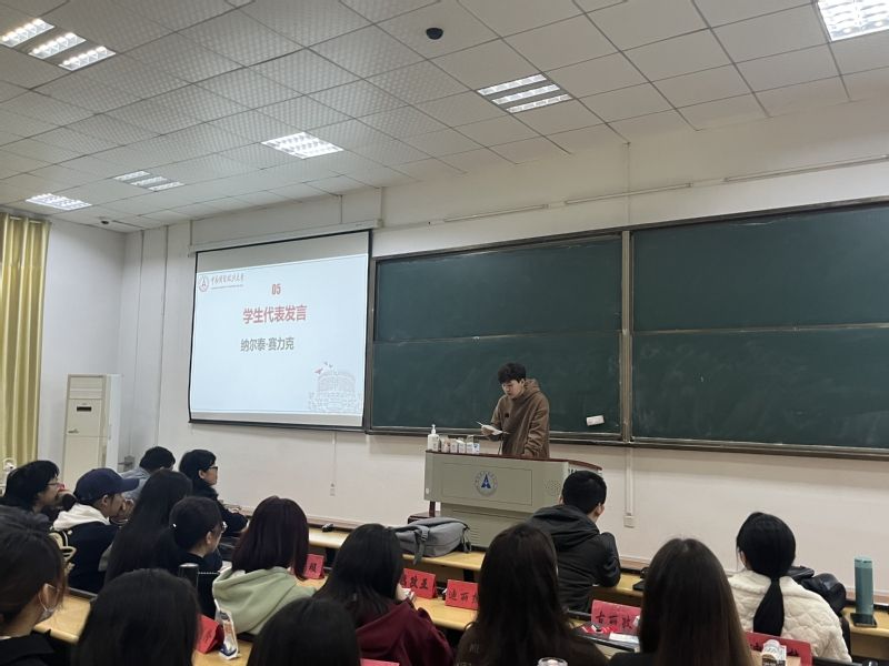 活动第三项,由学生代表罗润佳和纳尔泰·赛力克同学发言。两位同学分别从学习和日常生活两方面着手分享了自己的学习经验,告诉同学们要合理安排时间,在课上要认真听讲,尽量做到跟紧老师的脚步。课下要认真完成作业,遇到难题可以主动询问老师以及同学。同学们可以在课余时间适当地放松,释放自己的压力。