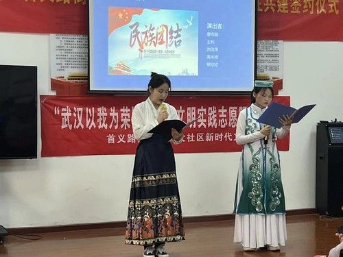 最后,所有同学一同齐唱了《我和我的祖国》,展现预科各民族学子亲如一家的相处模式。在悠扬的爱国旋律中,活动结束。社区居民对此次表演十分满意,对各民族文化产生了浓厚的兴趣,表演结束后,还有居民主动询问关于民族服饰、生活习惯等问题。