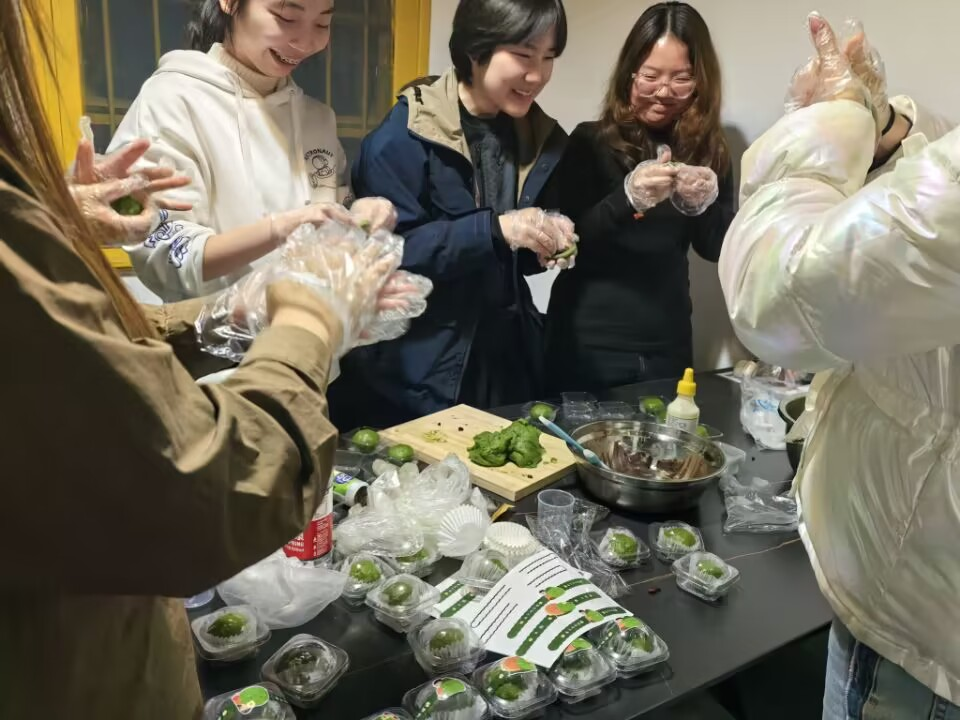 活动初始,大家先了解了清明节吃青团的来历和习俗,随后一起学习了青团的制作方法。大家相互配合、协作互助,一起揉面、包馅,用掺有抹茶香味的糯米皮,包裹进红豆和豆沙等馅料,制作出一个个清香扑鼻柔软可爱的青团。团队合作的魅力在此刻尽显无遗,大家都怀揣热情,包出一份份祝福和思念。