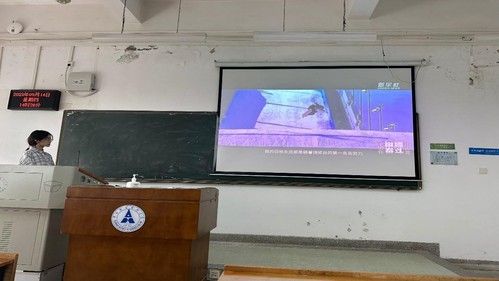 接着主持人以“青春的力量不可估量,青春的使命不可推卸,梦想因拼搏而伟大,历史因奋斗而不朽”引入“作为青年团员的我们现在该做些什么”这一问题,带领班级同学观看学习创意微视频《青春闪光》。