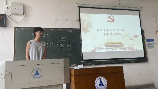 紧接着,由团支书刘申申带领大家学习了习近平总书记“6.26”重要讲话精神。2023年6月26日,习近平总书记在中南海同团中央新一届领导班子成员集体谈话并发表重要讲话,充分肯定新时代党的青年工作取得的重大成就、发生的深刻变革,指出团组织的政治性、先进性、群众性更加鲜明,团干部的思想作风、工作作风、生活作风更加积极健康向上,在广大青年群体中的形象焕然一新,对进一步做好共青团工作提出明确要求,强调党中央对共青团和广大青年充分信任,对团中央新一届领导班子寄予厚望。
