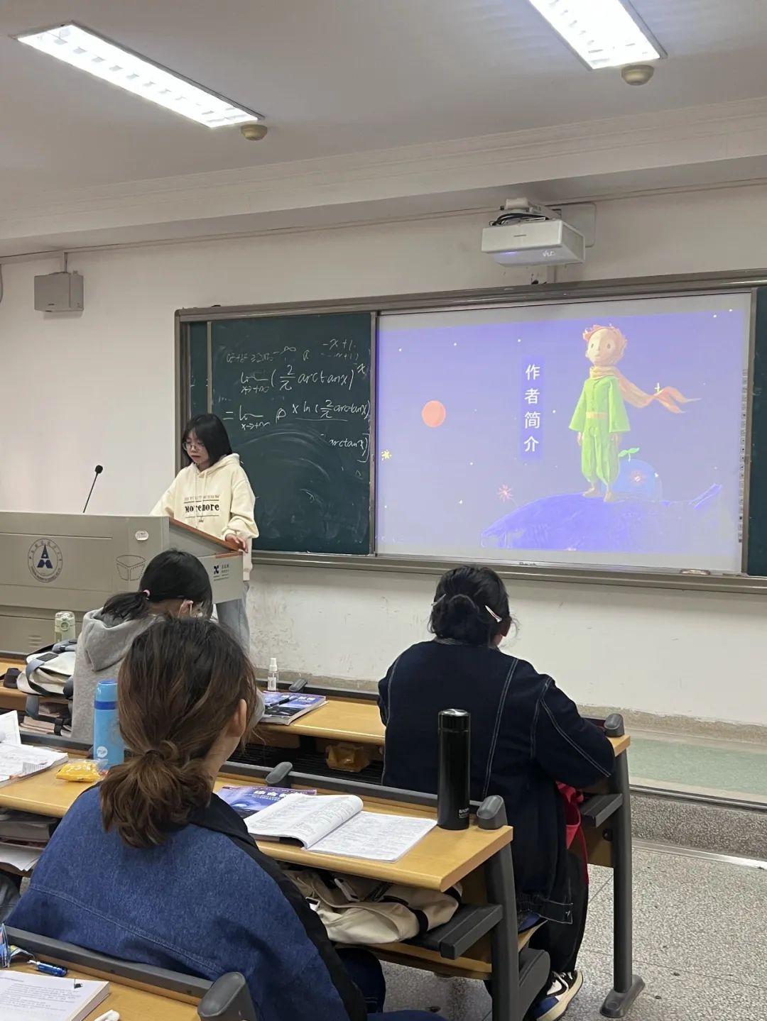 邓瑶同学为大家介绍了著名的《小王子》。《小王子》是作家安东尼 •德•圣埃克苏佩里于1942年写成的著名法国儿童文学短篇小说。作者以孩子式的眼光,用浅显天真的语言揭示出成人世界中的虛荣、势利和死板教条,从而表达出对真善美的讴歌。有一位作家曾这样写道:“我每一次读《小王子》,都被这种孩子式的看待世界的态度感动,多么天真、幼稚,可又多么纯洁、真诚。时光流逝,童年远去,我们渐渐长大,岁月带走了许许多多的记忆,也消蚀了心底曾经拥有的那份童稚的纯真。但是,每次读一遍 《小王子》,就好像在清水中洗了个澡一般,心又重新变得剔透明亮了。”