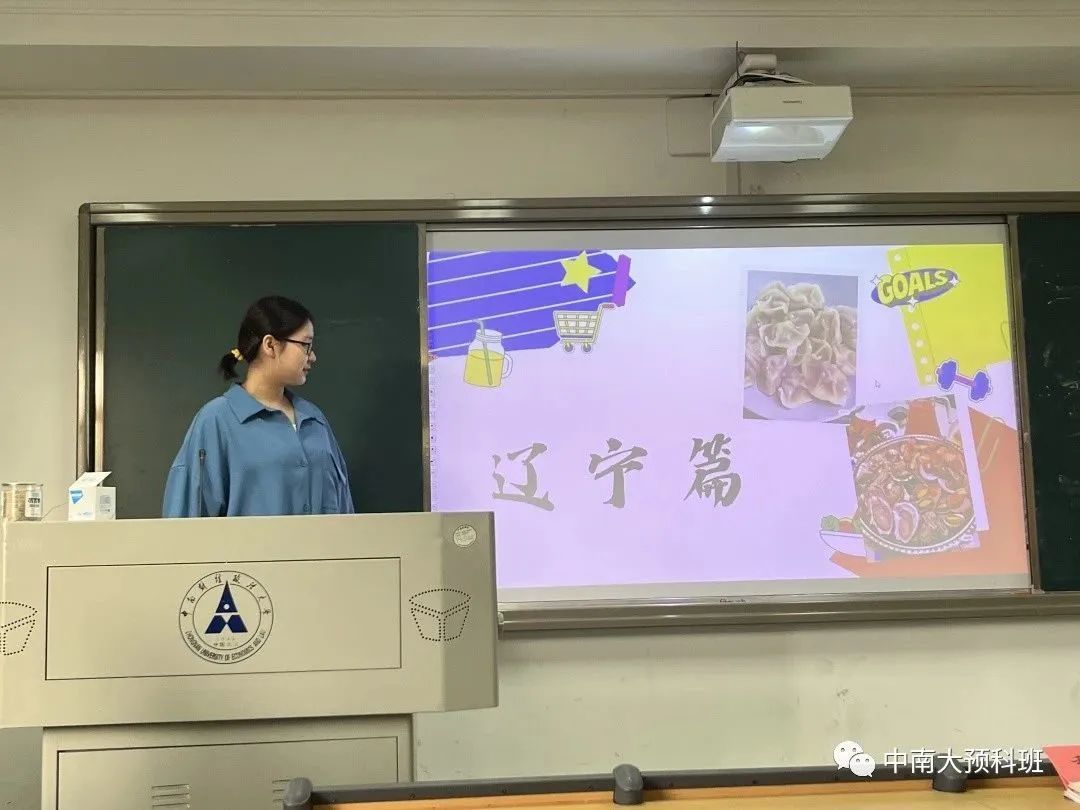 尹文同学的家乡是辽宁省,为同学们介绍了辽宁美食。皮薄肉多的饺子、炒焖子、酸甜为主、麻辣为辅的抚顺麻辣拌、酸汤子、杈子等等具有东北特色的美食。简直是美食盛宴!