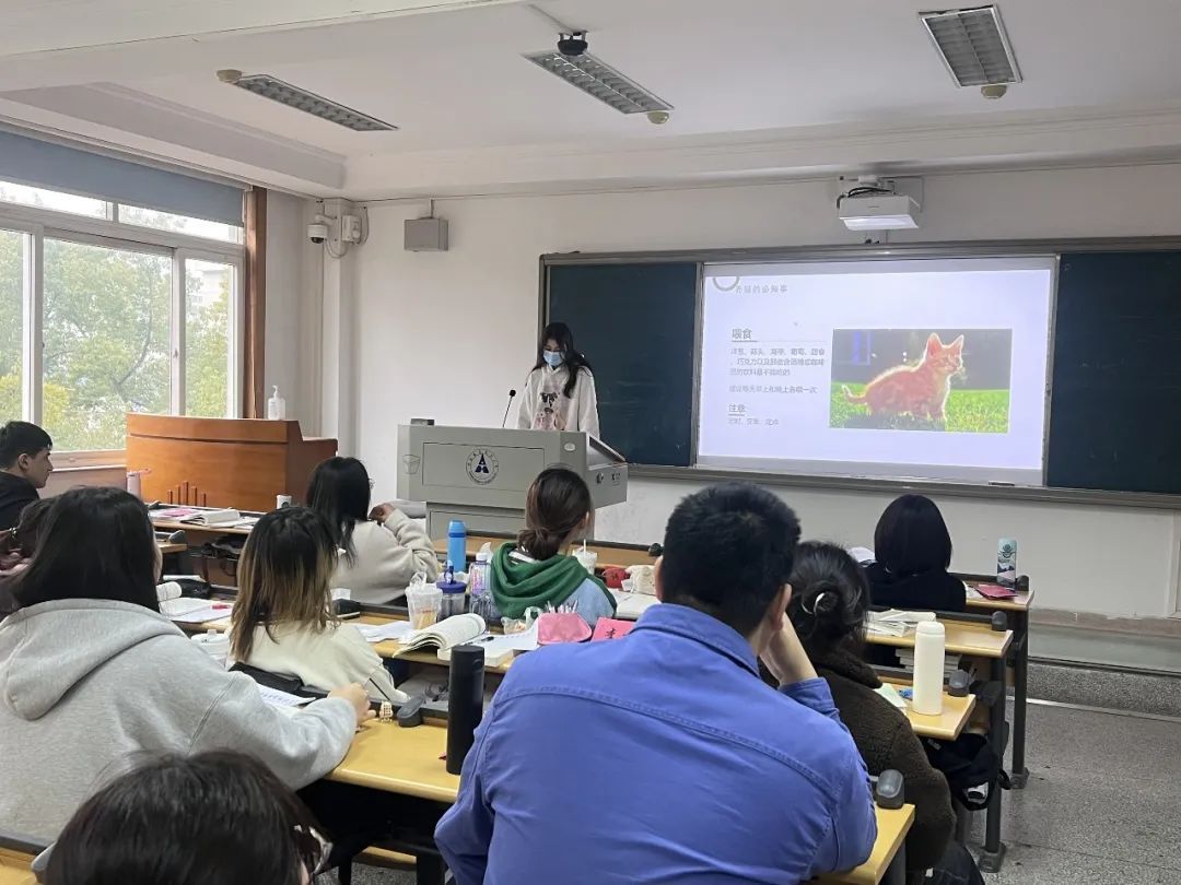古丽孜巴同学为大家介绍了养猫需要了解的一些知识以及注意事项,向大家分享了自己曾经养猫的经验,吸引了许多的猫咪爱好者,也让同学们丰富了养猫的经验。