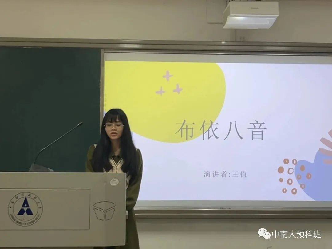 刘俊杰同学介绍了钢琴曲,向同学们普及了钢琴曲的分类和不同时期著名的钢琴家。向大家分享了自己最爱的几首钢琴曲,伴随着悠扬的琴声同学们领略到生命的五彩缤纷。