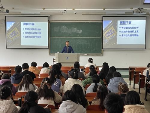(通讯员 张海琢)为了帮助高年级学生把握考研最新形势,增进学生对学校、专业等内容的了解,科学制定考研选择与规划,11月25日上午10:00,“研”路相伴系列活动之考研辅导讲座在文波楼305顺利举行。万学教育海文考研教学与研究中心谭晓禹受邀主讲,讲座由22级兼职辅导员张海琢主持。