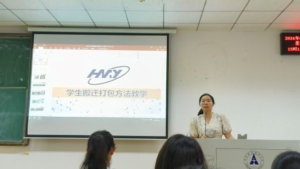 陈盈对同学们积极参与社会实践的热情给予了高度的赞扬和鼓励,希望大家能够抓住每一次的机会,勇敢地走出舒适区,不断挑战自我、超越自我。最后,她对即将进行的首义到南湖搬家工作进行了详细安排,包括打包教程、注意事项及整体流程和时间安排,以确保搬迁工作的顺利有序进行。