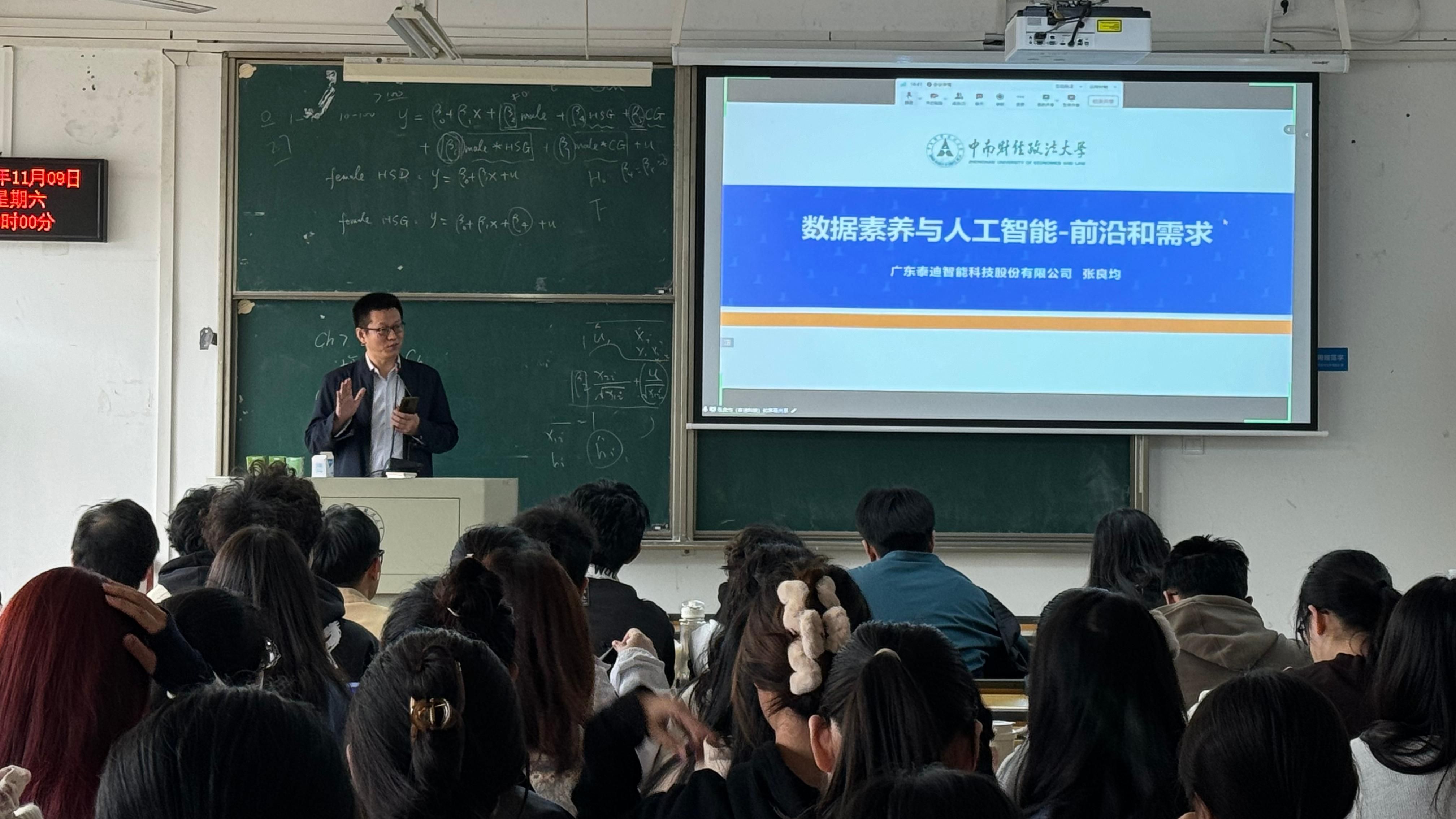 (通讯员 吴志伟 周博文)当前,数字经济持续作为国家战略核心,驱动经济高质量发展与产业转型。统计与数学学院紧跟时代步伐,深化产教融合,继续开设《行业大数据应用与实践》课程,邀请行业专家从不同维度分享行业洞见与实战经验,旨在培养具有大数据思维和创新能力的复合型人才,满足数字经济时代的人才需求。11月9日上午9:00,“大数据行业专家讲堂”系列讲座在文添楼105举办,讲座由蒋锋教授主持。