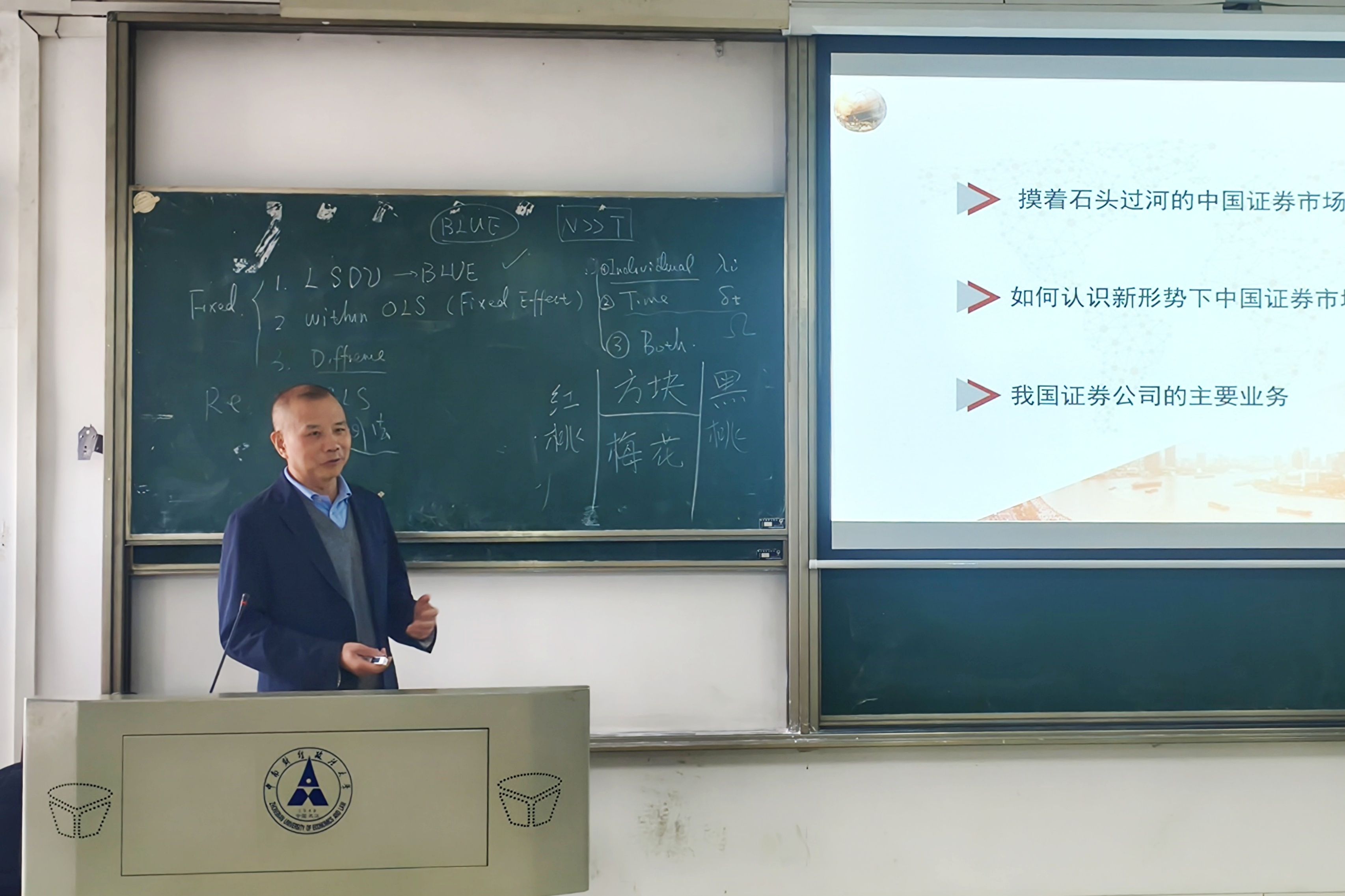 (通讯员 吴志伟 吴佳浩)当前,数字经济持续作为国家战略核心,驱动经济高质量发展与产业转型。统计与数学学院紧跟时代步伐,深化产教融合,继续开设《行业大数据应用与实践》课程,邀请行业专家从不同维度分享行业洞见与实战经验,旨在培养具有大数据思维和创新能力的复合型人才,满足数字经济时代的人才需求。11月23日14时,“大数据行业专家讲堂”系列讲座之“新时期的中国证券市场”在文添楼105教室成功举办,本次讲座由校外合作导师、野村东方国际证券有限公司董事总经理董腊发主讲,统计与数学学院副院长杨青龙教授主持。