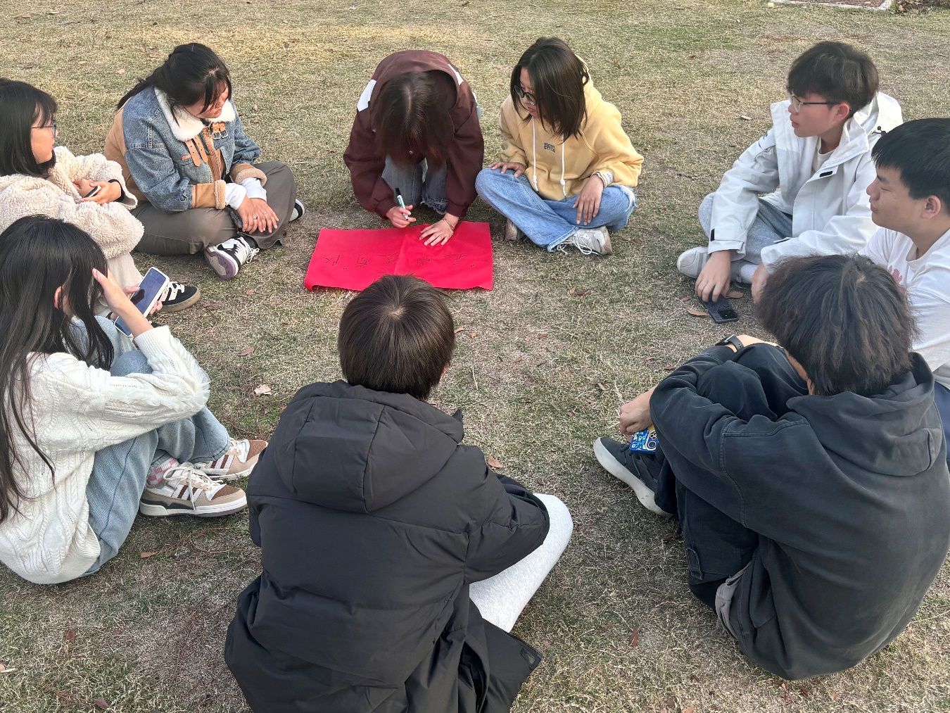 破冰环节,同学们进行“驿站传书”游戏。在丰富的肢体动作下传达信息,增强了彼此间的默契与信任,培养了团队合作精神。