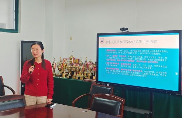 张璇领学《中华人民共和国学位法》,指出要关注学术学位与专业学位研究生的分类培养,根据学生的不同发展需求,实施差异化、个性化的培养方案,全面提升学生的学术能力与职业素养。她强调,研究生导师不仅要具备扎实的学术知识,还应严格遵守教师职业道德规范,以身作则,做学生的道德楷模和人生导师。