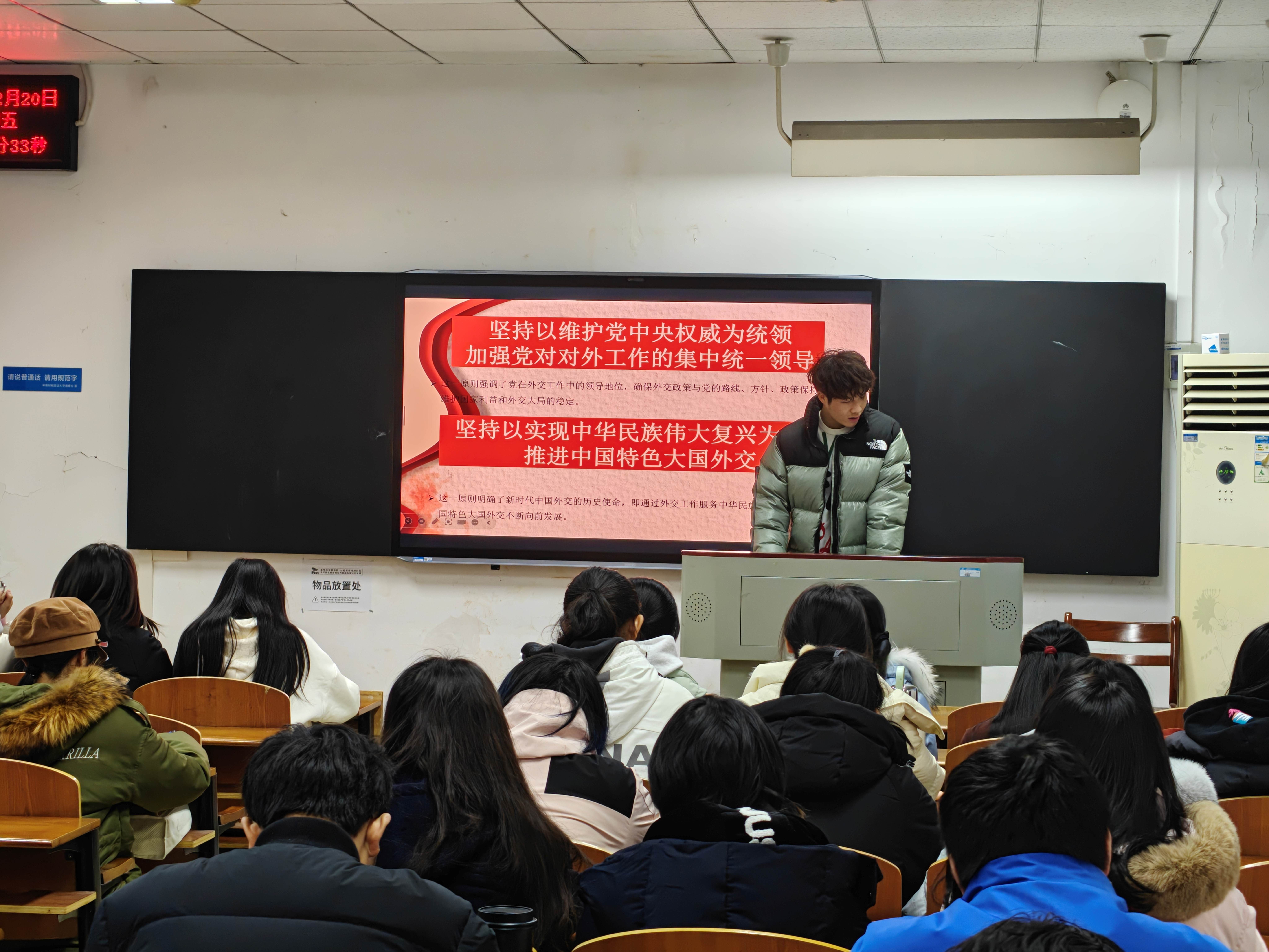 习近平外交思想,是理解人类命运共同体不可或缺的一部分,也是学习的重中之重。在主持人的带领下,同学们以朗读和背诵的方式,逐步理解习近平外交思想的精髓要义。