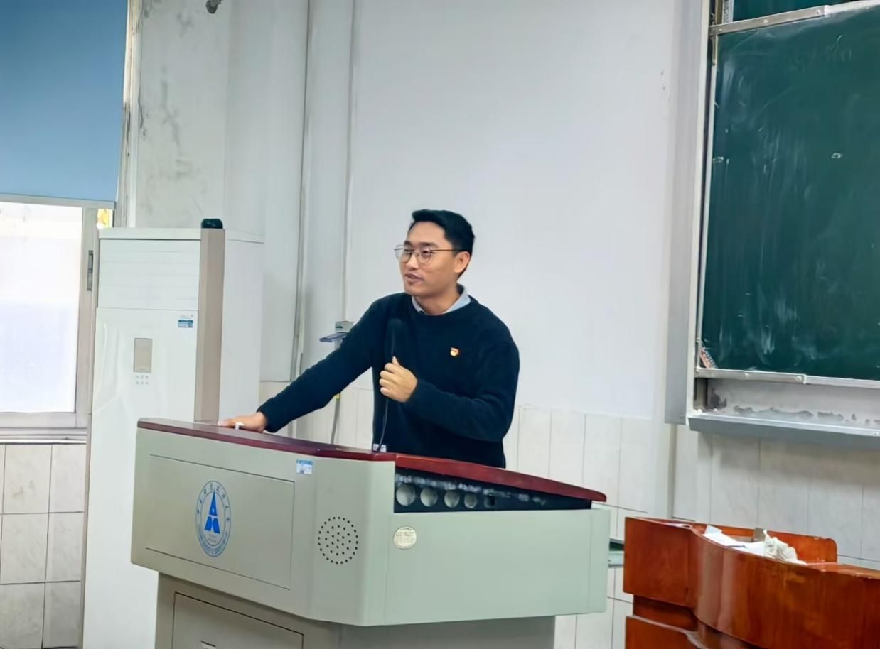苏正民师兄首先讲述了自己小时候的艰苦经历,在艰难的成长环境中,教育资源的匮乏与生活的困苦让他深知乡村孩子对知识与改变命运的渴望。正是这些亲身经历,促使他在成长过程中积极参与并推动阿依梦想讲堂、阿依助学计划以及阿依圆梦书屋等项目。他提到,这些项目的愿景是让乡村的孩子们能够通过知识改变命运,用智慧开启未来,以艺术完美人生,用爱心温暖世界。苏正民师兄鼓励同学们,无论身处何方,都应回到祖国和人民最需要的地方发光发热。