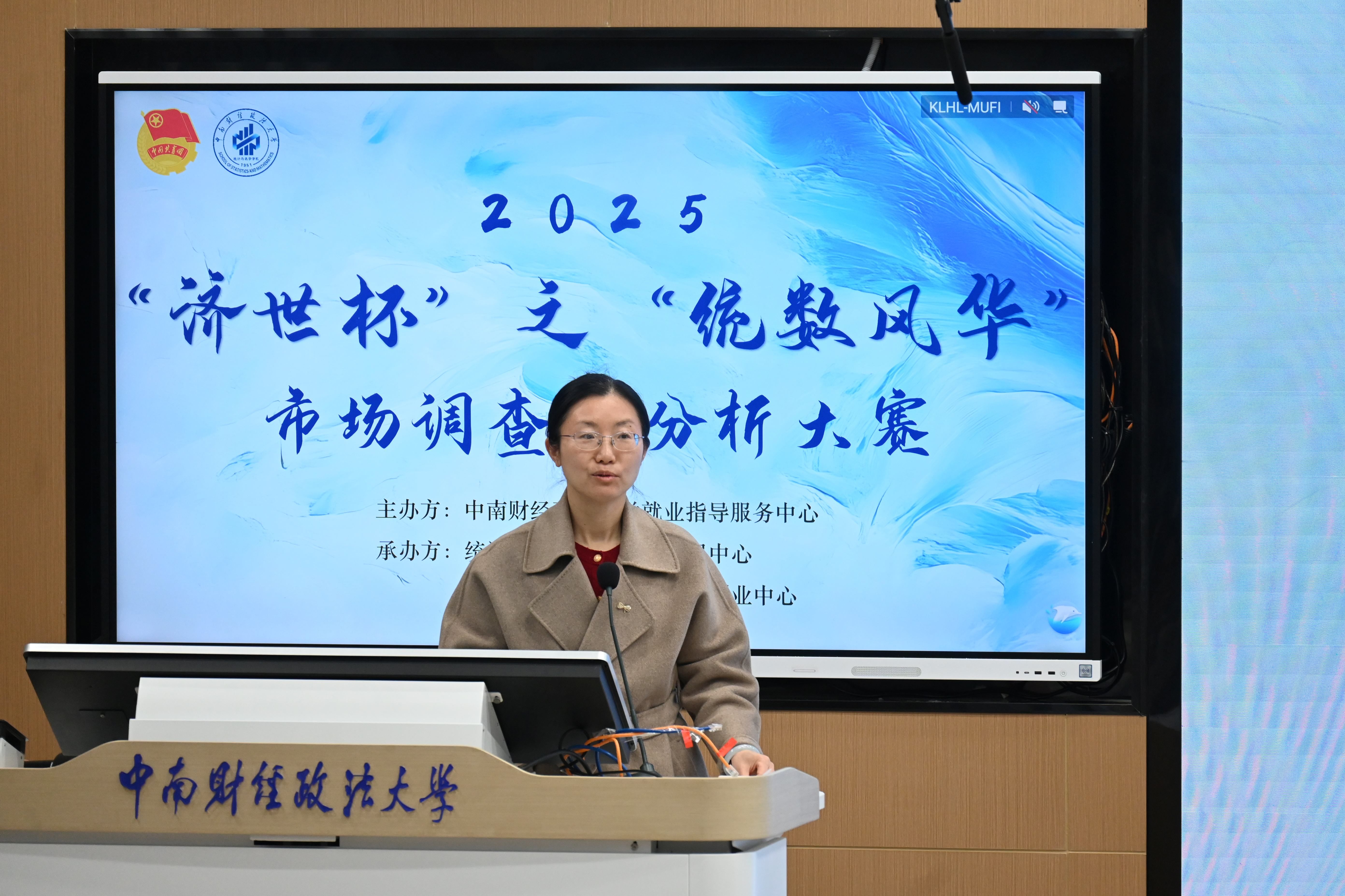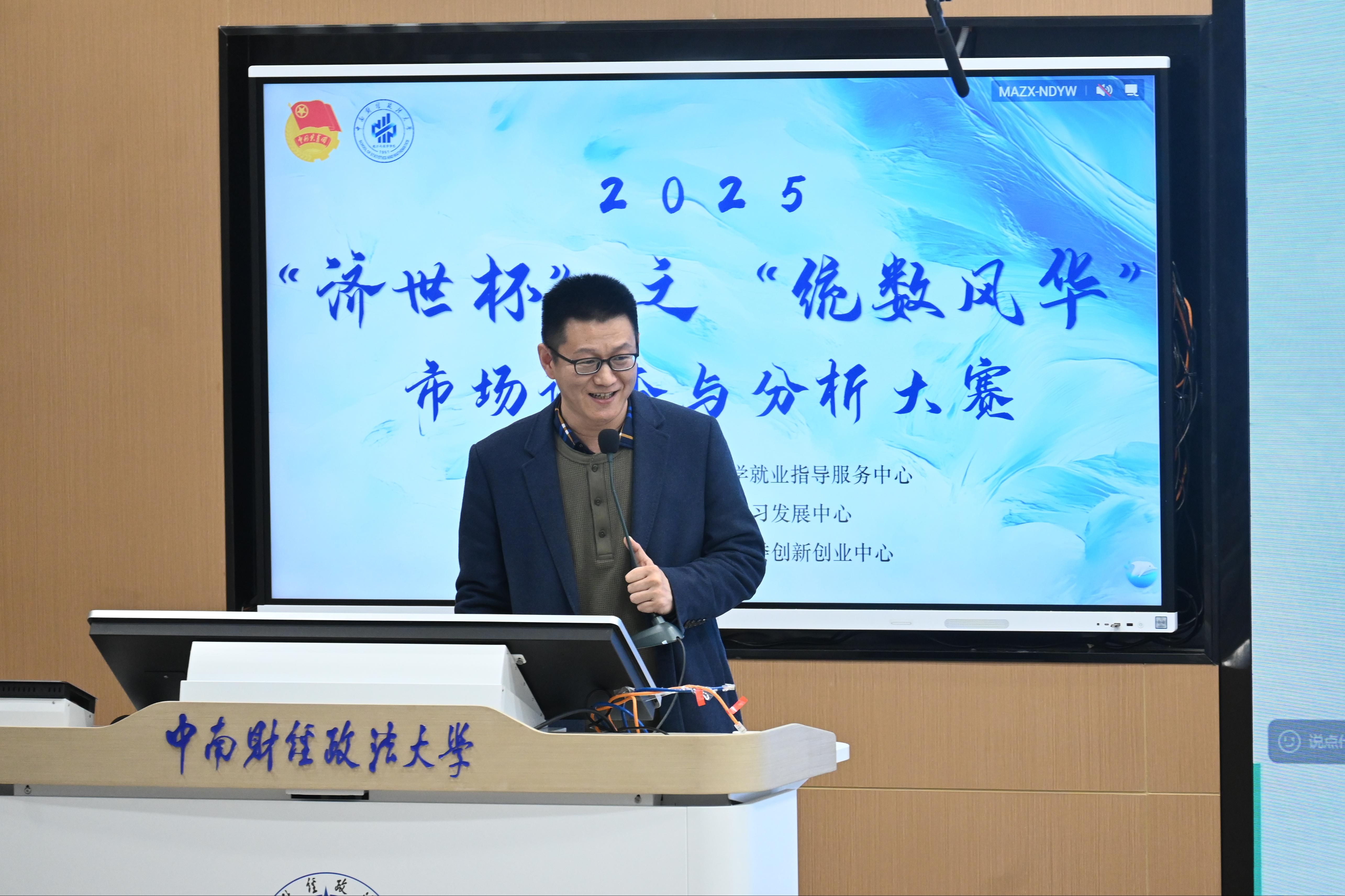 徐映梅教授在致辞中表示,参赛者应立足产学深度融合的赛事平台,聚焦民生关切与国家战略命题,将专业知识转化为实践成果。蒋锋教授强调要守正、创新,用真实的数据讲话,鼓励同学们以赛促学、以赛促教,在参赛过程中提高团队合作能力,提升专业素养。