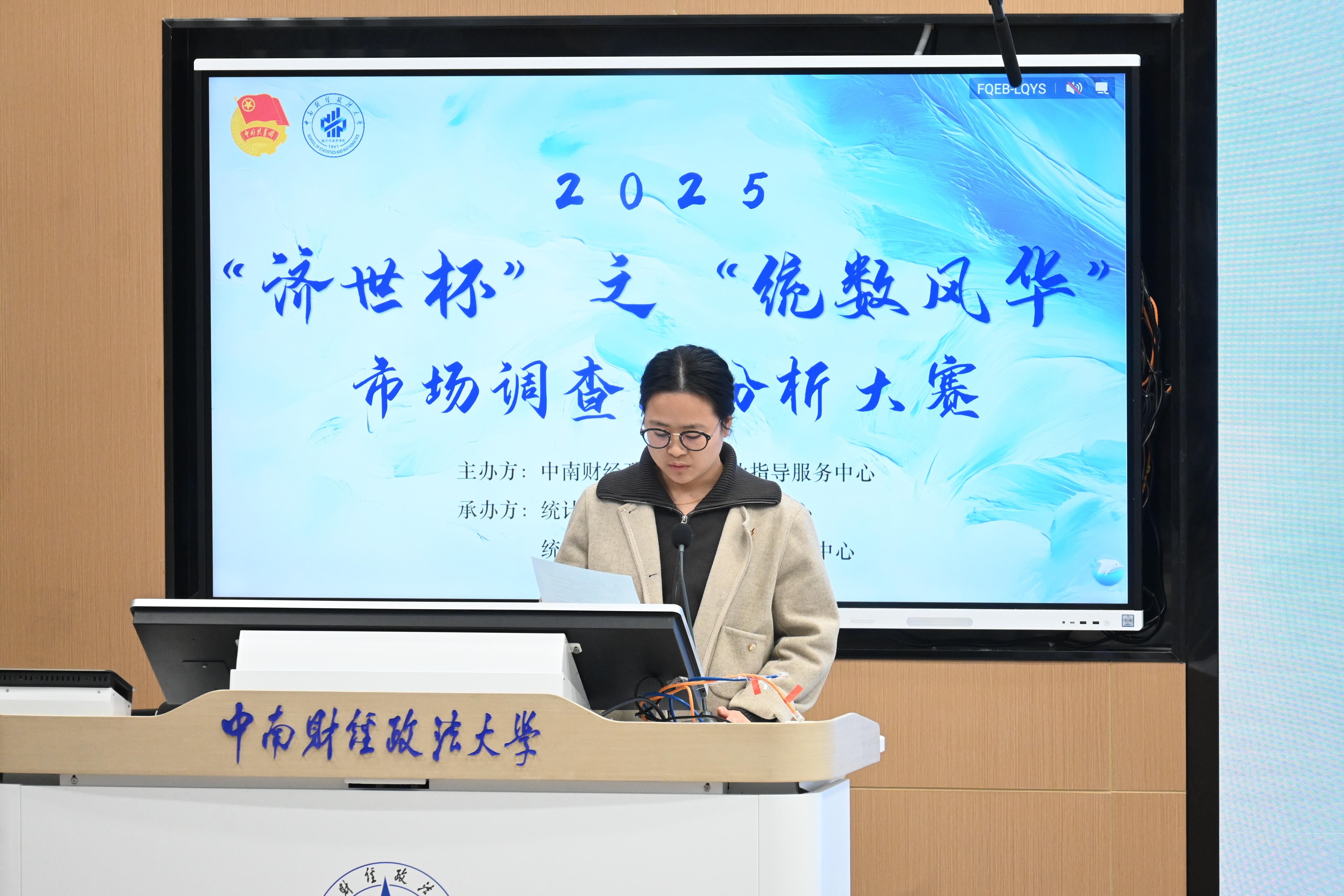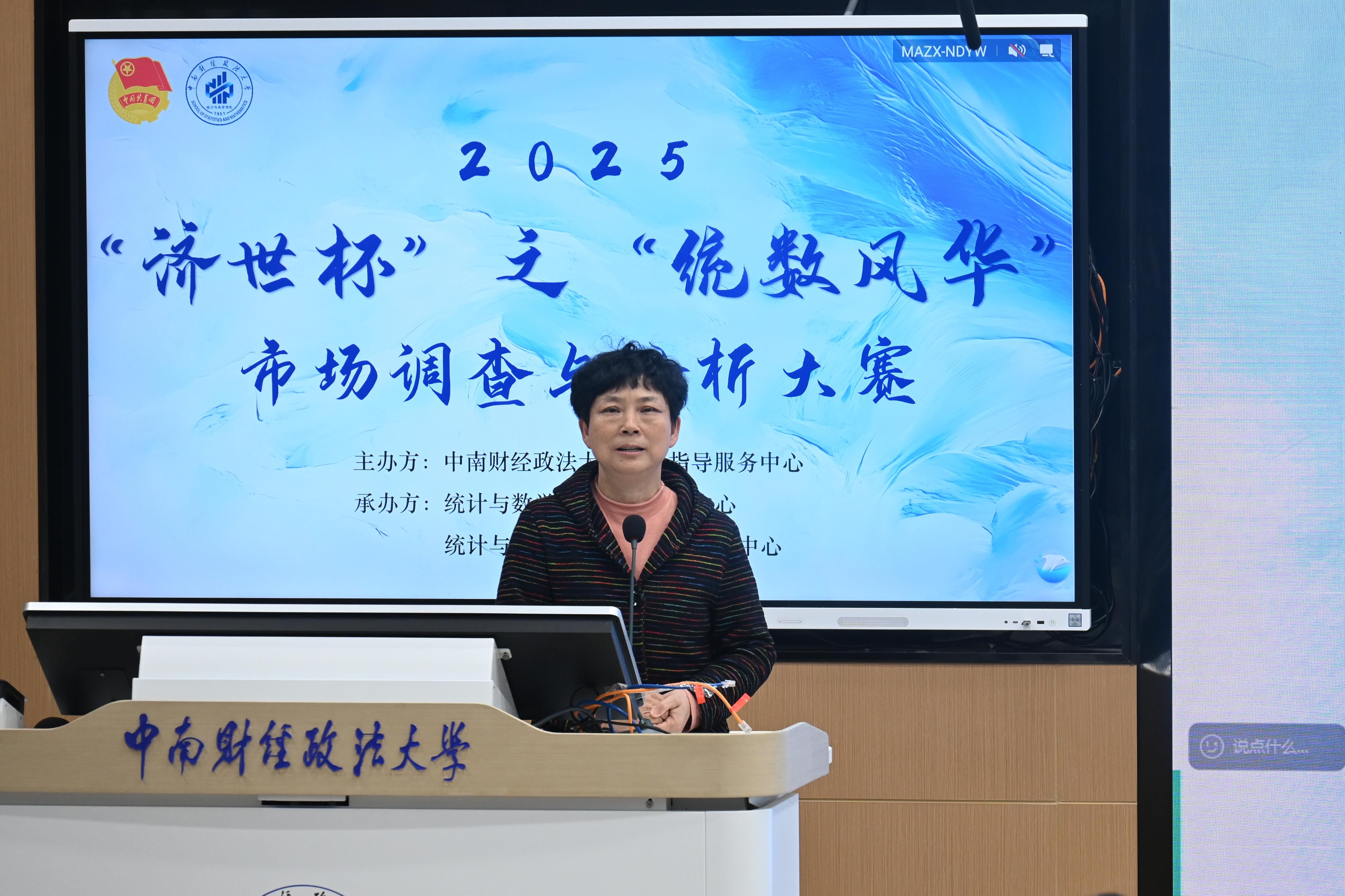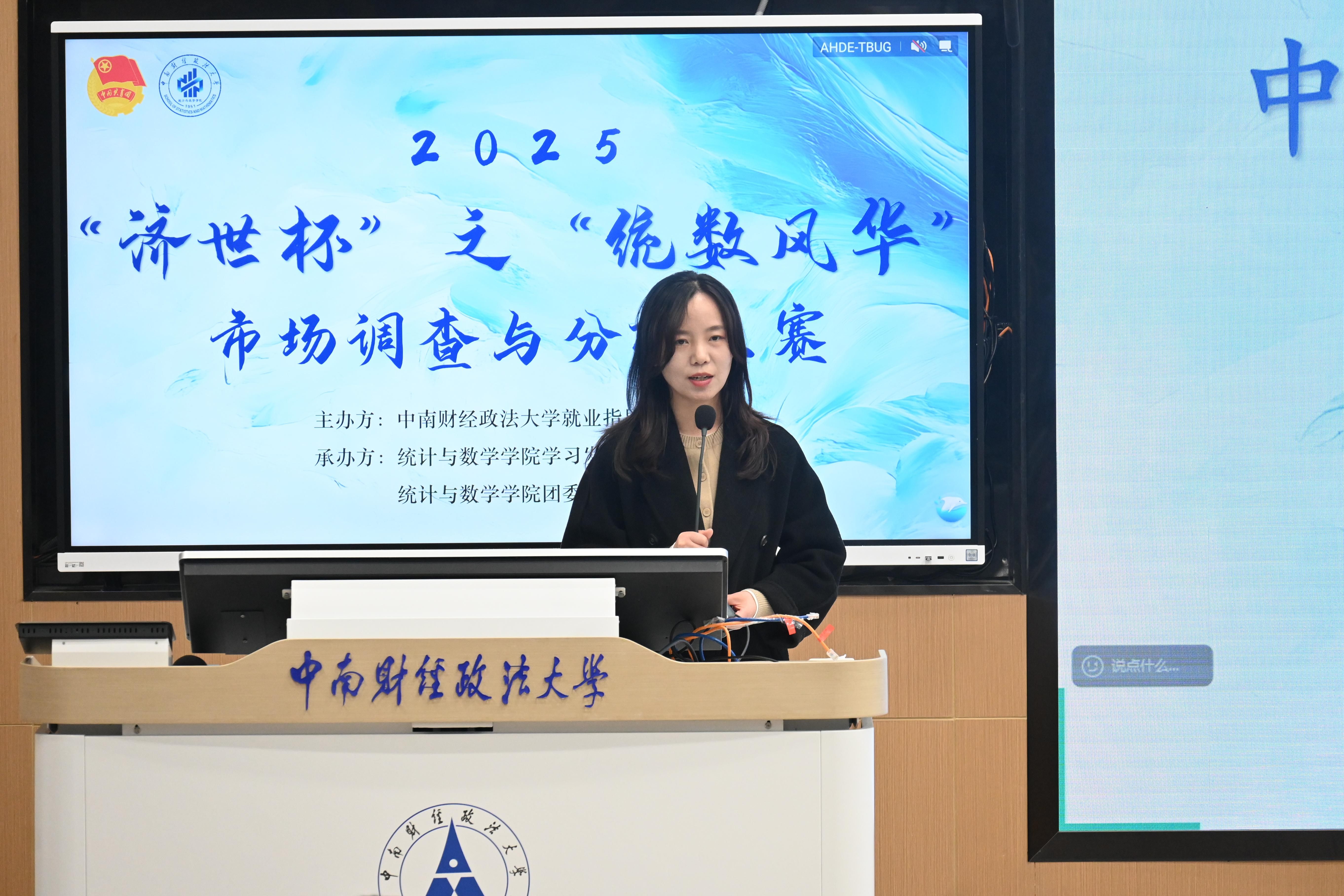 活动伊始,统计与数学学院党委副书记王瑄致开幕词。她表示,在国家数字化转型加速推进、数字经济规模持续扩大的背景下,统数学院鼓励学子运用统计方法与数据分析技术,挖掘市场潜力,服务社会经济发展。同时希望学生们聚焦实际问题,锤炼综合能力,开拓全球视野。